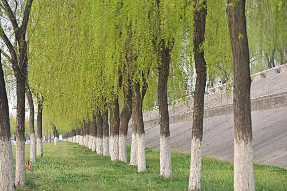 它們屬于溫帶落葉闊葉林,本就生長在溫暖干燥的北方,早已適應(yīng)了這里的環(huán)境,生命力十分強盛,耐干旱,不怕風(fēng)雨。很大的優(yōu)點是,它們生長速度快,樹冠濃密、遮陰效果非常好,價錢也很便宜。柳樹每年發(fā)芽很早,落葉很晚,幾乎是綠期較長的樹種,而且根本不用細心呵護,很快就能長到二三十米的高度,用來綠化環(huán)境再合適不過了。別的樹種價格昂貴,柳樹十分便宜,即使大面積種植,也花不了多少錢。除此之外,柳樹在空氣凈化方面也是“大功臣”一枚,一棵成年的柳樹,每年光是吸收二氧化碳,就可以達到281公斤,還能釋放204公斤的氧氣,簡直就是凈化環(huán)境的“神器”。