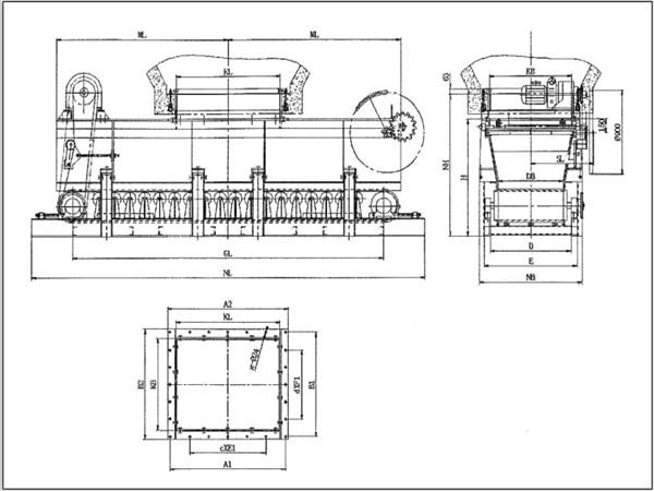 雙向帶式(甲帶)給料機(jī)的外形及連接尺寸: